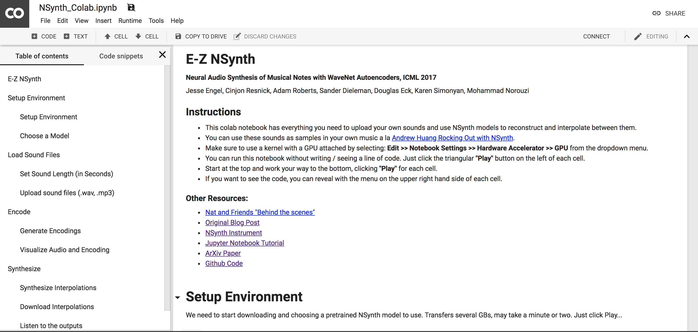 This Colab notebook has everything you need to upload your own sounds and use NSynth models to reconstruct and interpolate between them on a GPU at no cost.